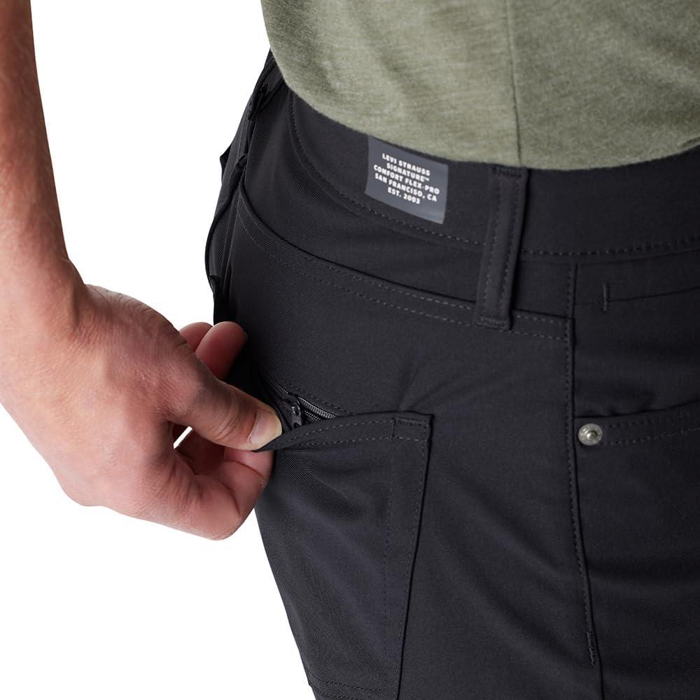 Made from 4-way stretch tech fabric with wrinkle-free technology, the Men's Comfort Flex-Pro Straight Pants from Levi Strauss Signature™ are moisture-wicking and breathable. They have a flex waistband for added comfort, and they feature a slim fit throughout with 5-pocket styling, including a hidden back zipper pocket.