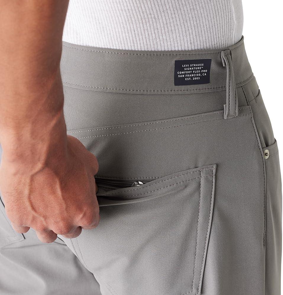 Made from 4-way stretch tech fabric with wrinkle-free technology, the Men's Comfort Flex-Pro Straight Pants from Levi Strauss Signature™ are moisture-wicking and breathable. They have a flex waistband for added comfort, and they feature a slim fit throughout with 5-pocket styling, including a hidden back zipper pocket.