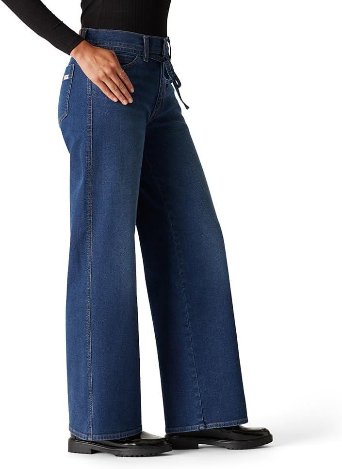 Introducing our newest mid-rise jeans in everyone’s favorite wide-leg shape! Made from authentic stretch denim, the Women's Heritage Belted Wide-Leg jeans from Levi Strauss Signature™ have an easy fit through the hip and thigh. The adjustable and removable denim belt adds personality and ensures the perfect fit, every time