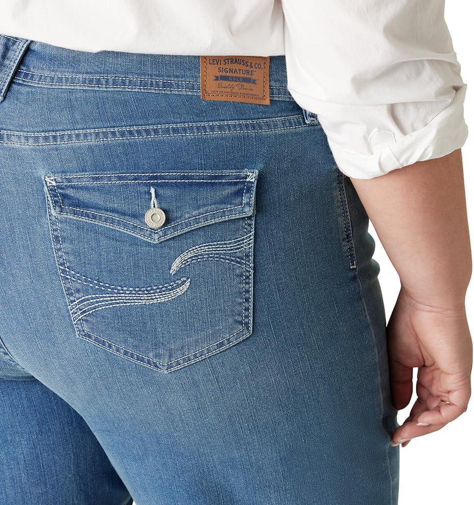 Made from super-soft stretch denim, the Levi Strauss Signature™ Women's True Wide Leg Trousers with Pocket Flap have a mid rise, a slim fit through the hip and thigh, and a wide trouser-style leg. The back pockets have a faux button-flap detail, but they function like traditional back pockets, with quick and easy access.